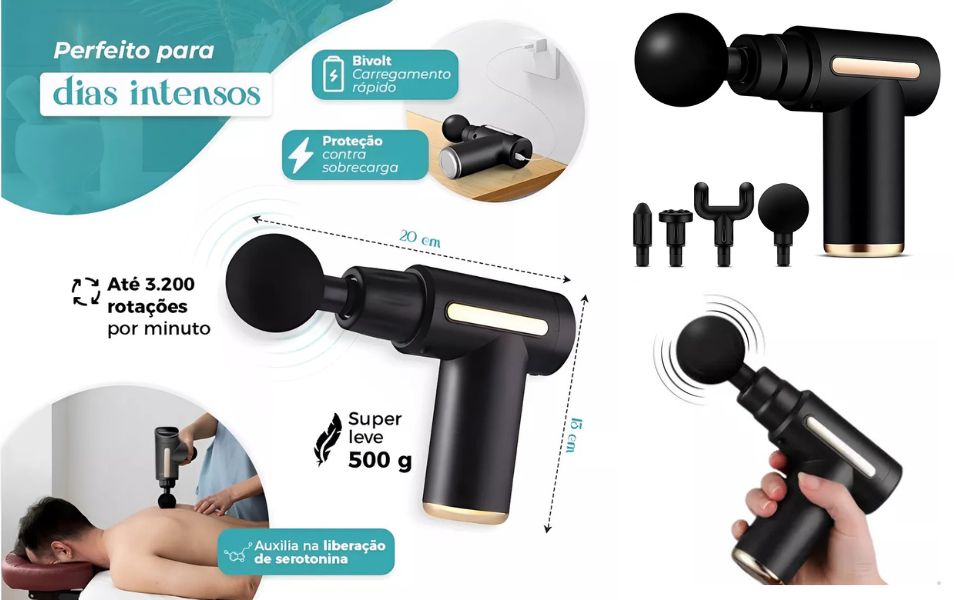 Experimente uma nova forma de combater a dor muscular com o Pistola Massageadora Portátil Aliviadora de Dor, Estresse e Tensão. Com uso regular, você poderá sentir alívio nas áreas mais tensas do seu corpo, como pescoço, ombros, costas e pernas